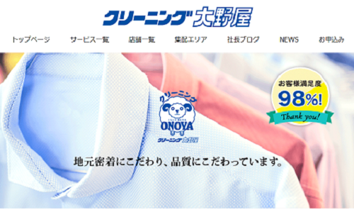 クリーニング大野屋は、お客様満足度98%の地元密着と品質にこだわっているクリーニング店です。